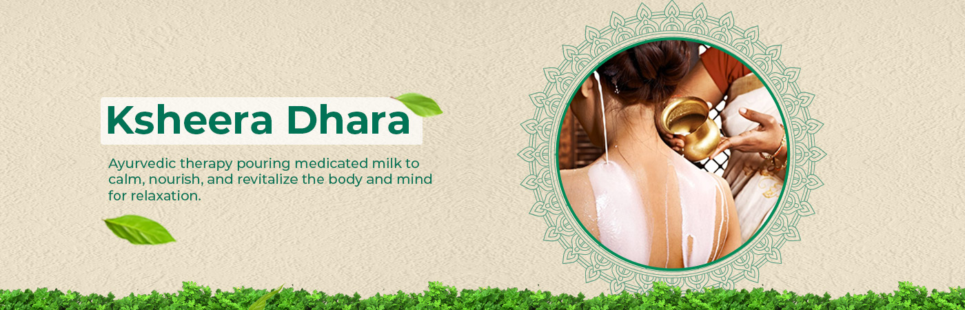Ksheera Dhara is an ancient Ayurvedic therapy that involves pouring a continuous stream of medicated milk over a specific area of the body, typically the forehead. In Sanskrit, "Ksheera" means milk, and "Dhara" refers to a continuous flow.